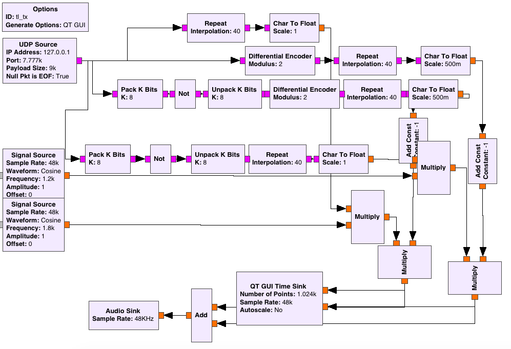 As a proof-of-concept, I created a web GUI that allowed me to toggle the traffic lights in the browser. In response, the web server sent UDP frames to a GNU Radio flow graph, which created an audio signal.