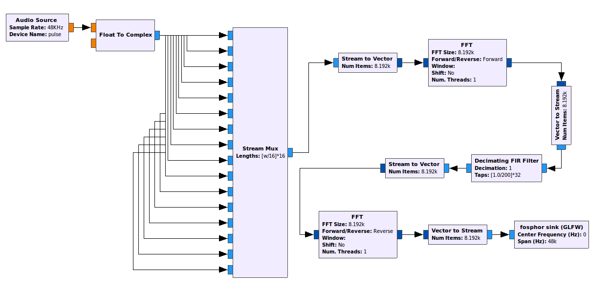 I was playing a bit around with gr-fosphor for audio. To make it look nice, I tried to increase the number of samples per second without changing the spectral shape. (And no, that’s not just upsampling.)
