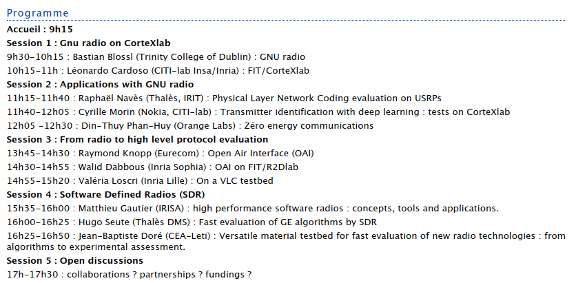 I’ll talk about GNU Radio and its applications in research at the meeting of the French wireless testbed community.